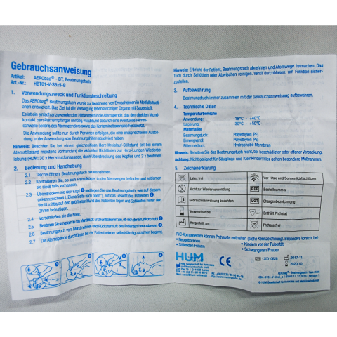 Beademingsdoekje met mondstuk en reanimatie instructies. De kiss of life wordt gebruikt bij mond op mond beademing. Het inblaasventiel heeft een terugslagklepje, dit zorgt ervoor dat ingeblazen lucht wordt doorgelat ...