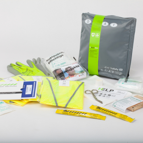 EHBO Kit Auto geschikt voor reizen met als doel of tussenstop Duitsland, Zwitserland, Oostenrijk en Italië. De EHBO tas bevat een uitgebreide vulling, geschikt bij pech onderweg en kleine ongelukjes. De inhoud voldoet aan de DIN13164 (Deutsche Industrie Norm).