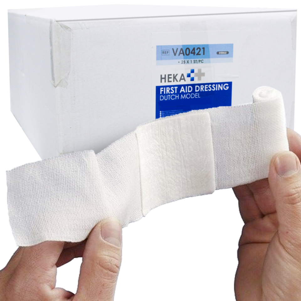 Snelverband gerold nr 1, wondkussen 6 x 8 cm. Het steriele snelverband heeft een korte en lange zwachtel. Voordeel van het NL model snelverband is dat er slechts 1 lange zwachtel om het verband moet worden gelegd. H ...
