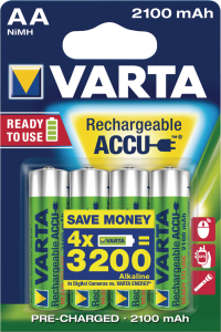 Oplaadbare AA batterijen van het merk Varta zijn milieuvriendelijk, zuinig in verbruik en gaan langer mee dan gewone alkaline batterijen. De batterijen worden geleverd in een blisterverpakking met 4 oplaadbare NiMH batterijen, aanbevolen voor controllers, audio-apparatuur, industriële toepassingen enz.