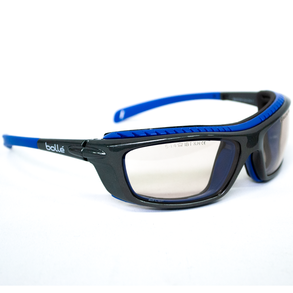 Bollé Baxter veiligheidsbril die beschermt tegen stof, vaste deeltjes en druppels van chemische vloeistoffen. Zeer modern design in de kleurstelling black / blue. Het montuur is aan de binnenzijde afgewerkt met een waterdicht foam dat erg comfortabel aanvoelt. Door een zeer vernuftig bevestigingssysteem kan deze bril gedragen worden met poten en elastische band. De CSP lens is zeer licht getint en geschikt voor werkzaamheden met een afwisselende blootstelling aan sterk en zwak licht.